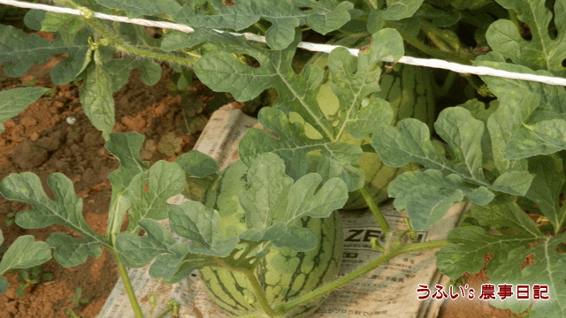 スイカに一番近い巻きひげが枯れたら食べごろというのも合わせて、まずまずあたるようになったが、やっぱり難しい。